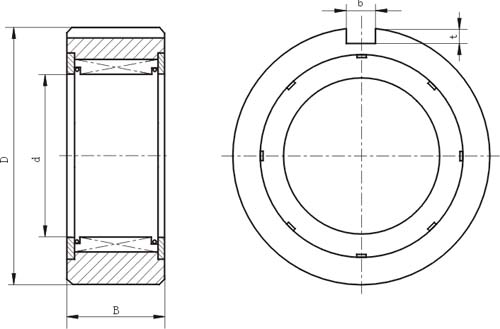 B200系列為無(wú)內(nèi)環(huán)無(wú)軸承支撐的楔塊式單向離合器。徑向尺寸與標(biāo)準(zhǔn)軸承尺寸相同。使用時(shí)需配合軸承安裝,以保證軸和離合器外環(huán)的同心度,承受軸向與徑向負(fù)載。使用時(shí)需加注潤(rùn)滑油脂。B200為英制系列。